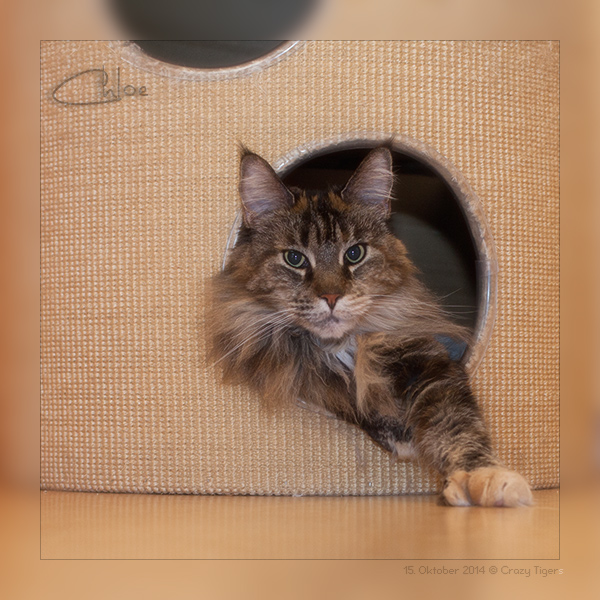 Chloe hat sich in der untersten Höhle der Kratzbaumtonne "eingenistet".