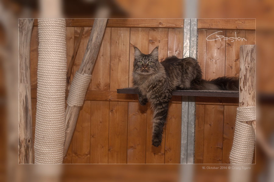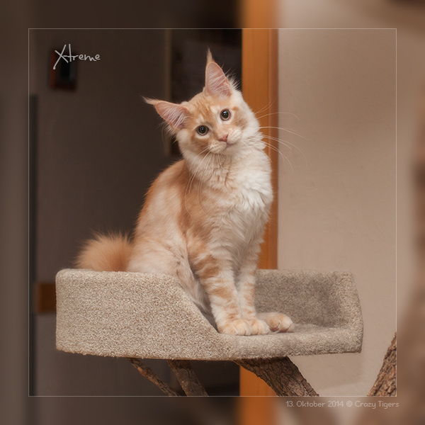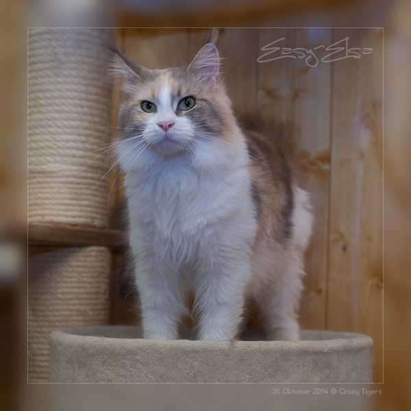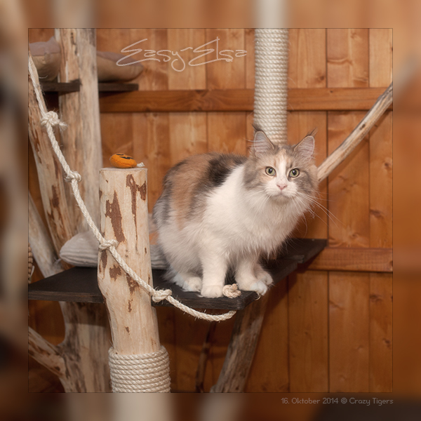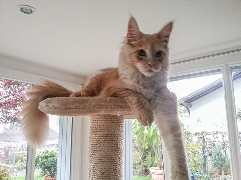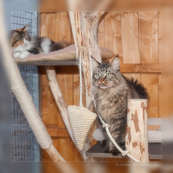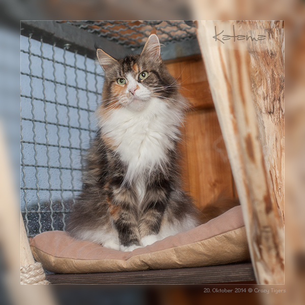 Katama ganz oben auf dem Naturkratzbaum im Aussengehege.