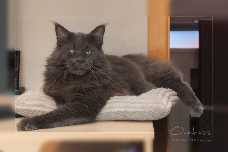 Overdress liegt lässig auf dem Schreibtisch-Liegeplätzchen.