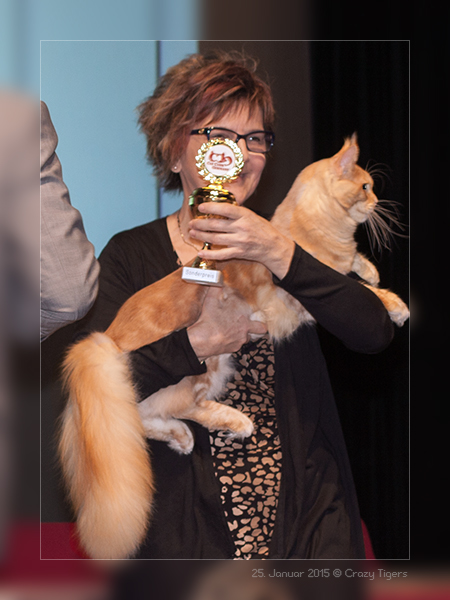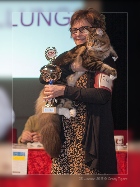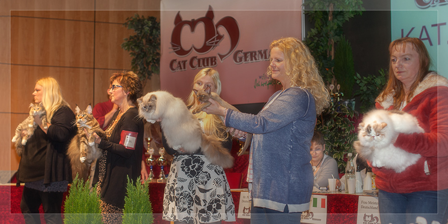 Henri bei der Richterin, Xtreme beim BIV, Henri mit BOB und dieses Bild zeigt die fünf Siegerkatzen des Tages.