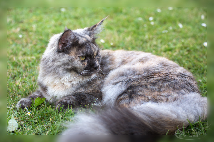 Zwei Bilder von Donna im Rasen - Bild1 und Bild2.