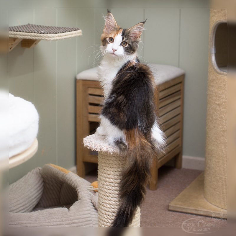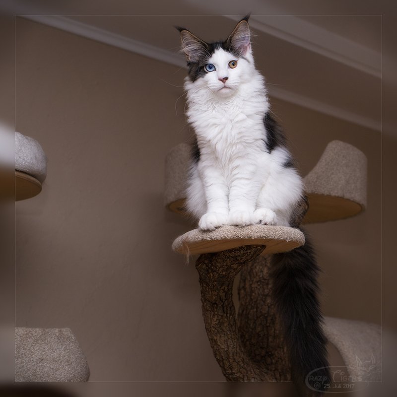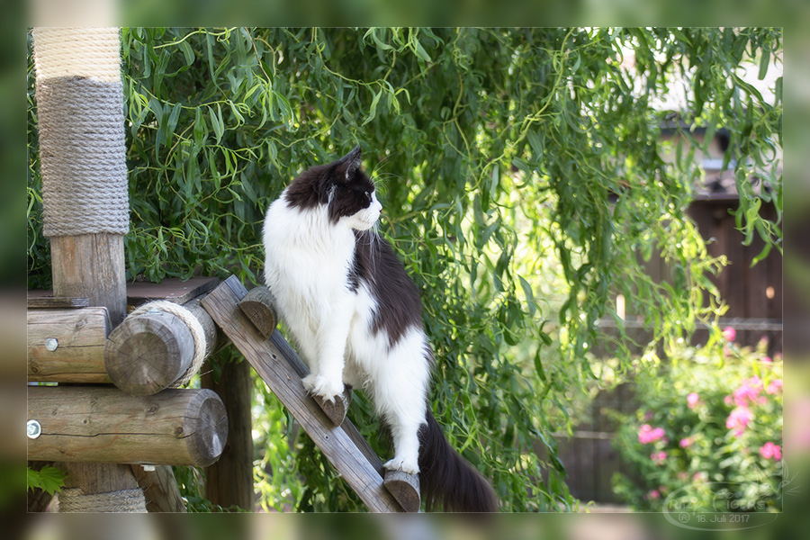 I'Xi klettert auf die Kratzbaumleiter und verschafft sich so einen guten Überblick.