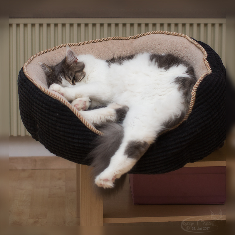 Fabio macht gerne ein Nickerchen in einer Art Hasen-Rücklage.