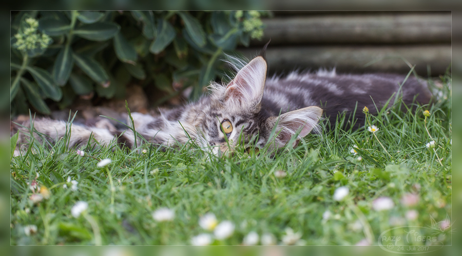 Fabio macht einen auf "Macho" - er liegt cool im Garten.