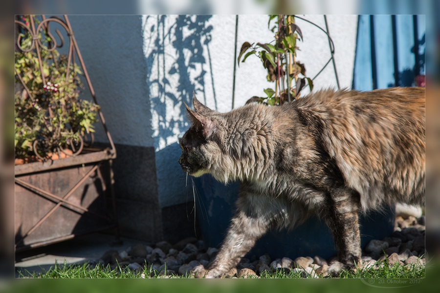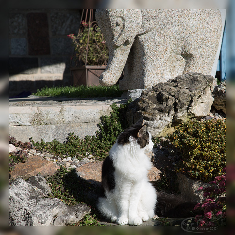 Frederico sitzt im Steingarten und genießt die Herbstsonne.
