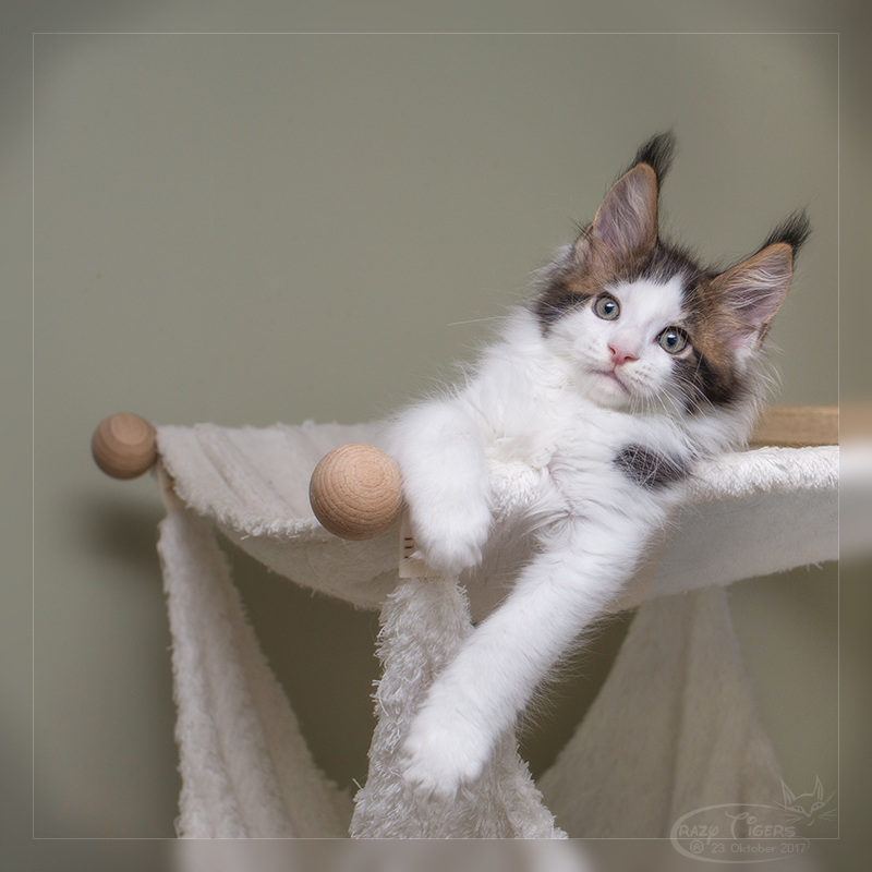 Homer (9 Wochen alt) liegt "angeberisch" in der Hängeschale.