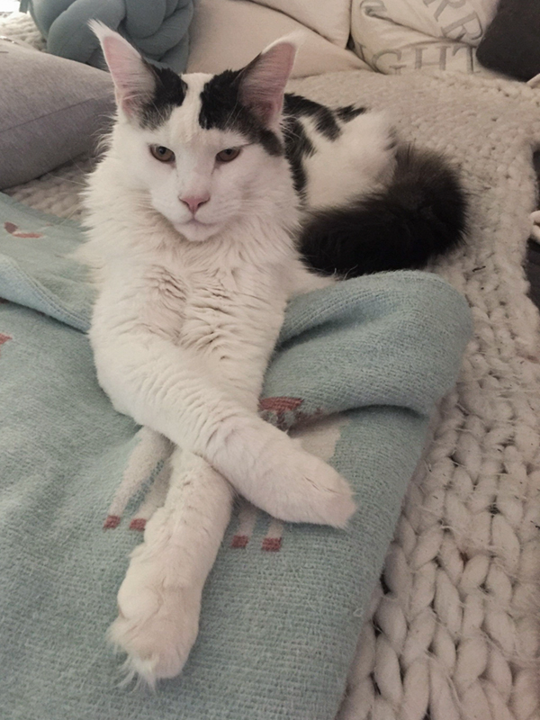 Queenie tretelt auf dem weichen Fransenkissen.