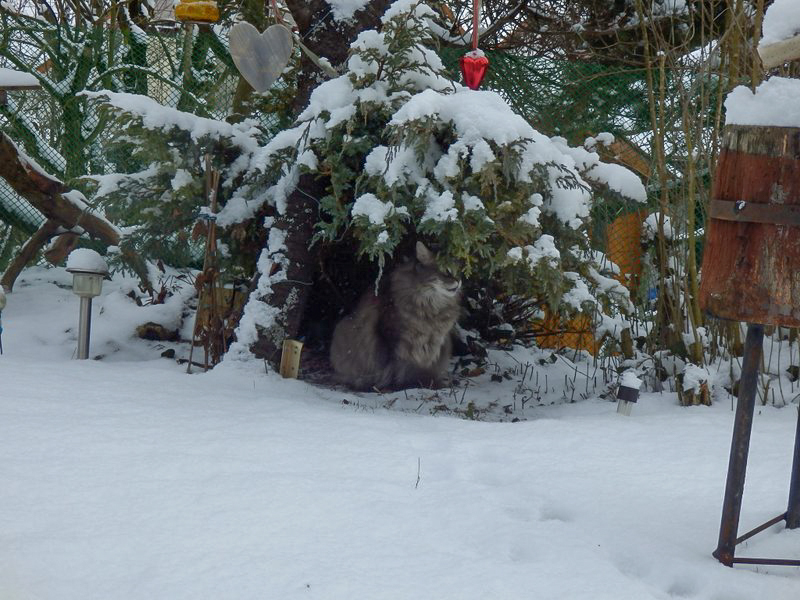 Muffin im Schnee und einen Schnappschuß der beiden auf und in der