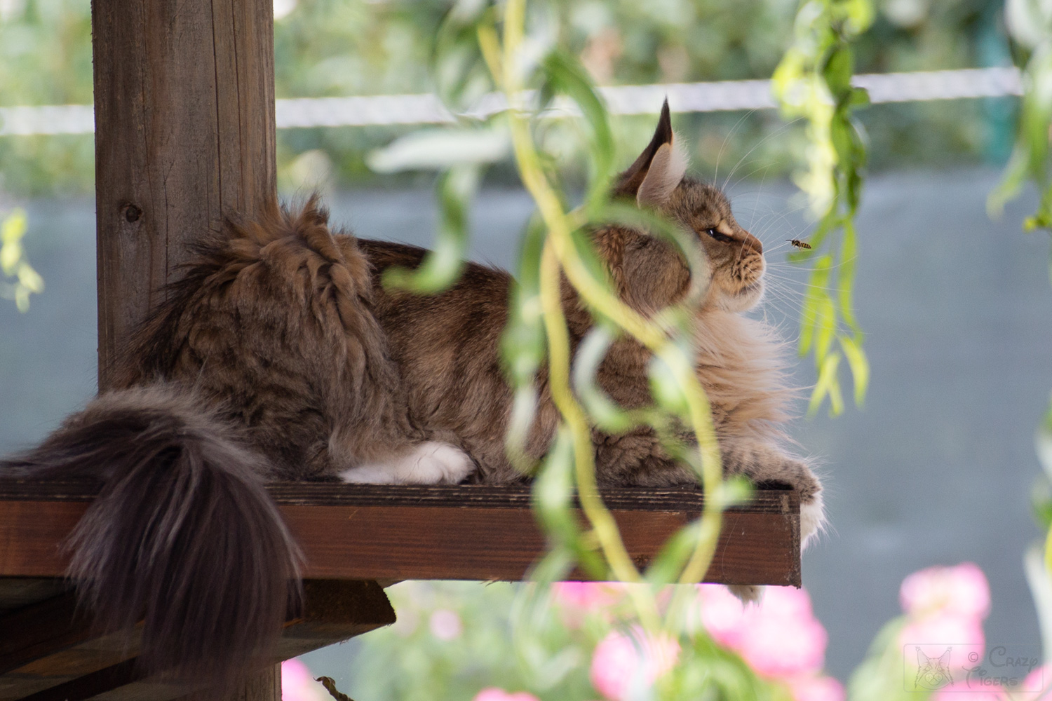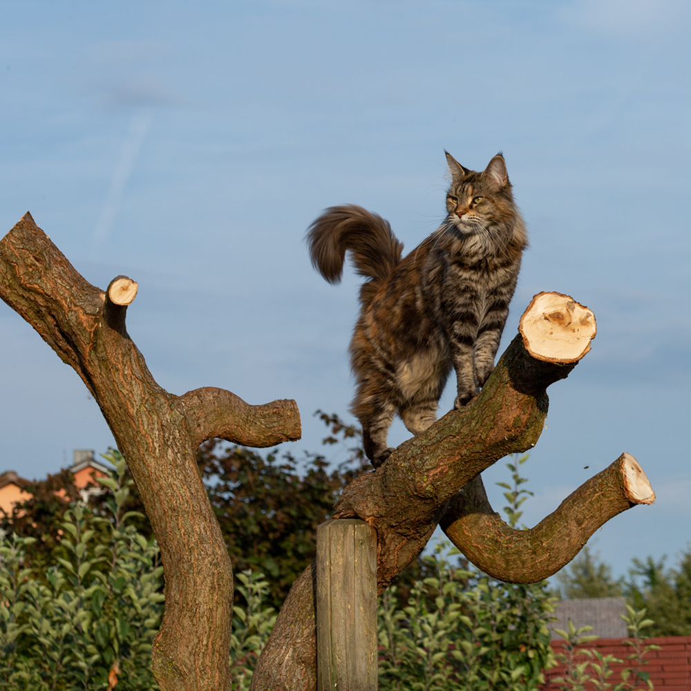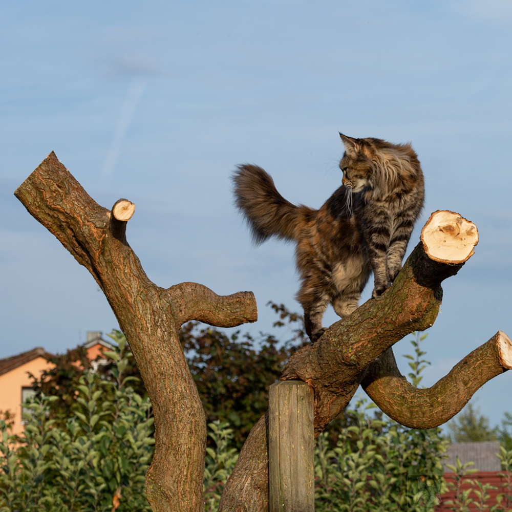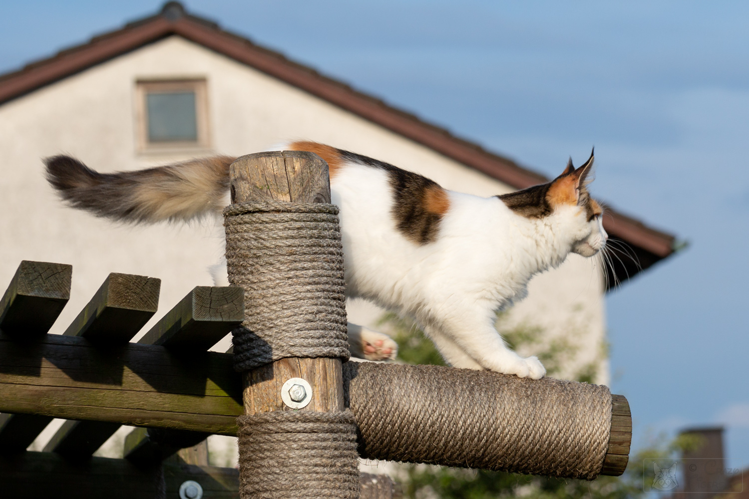 Rocky auf dem Außenkratzbaum - hier hat man tolle Übersicht.