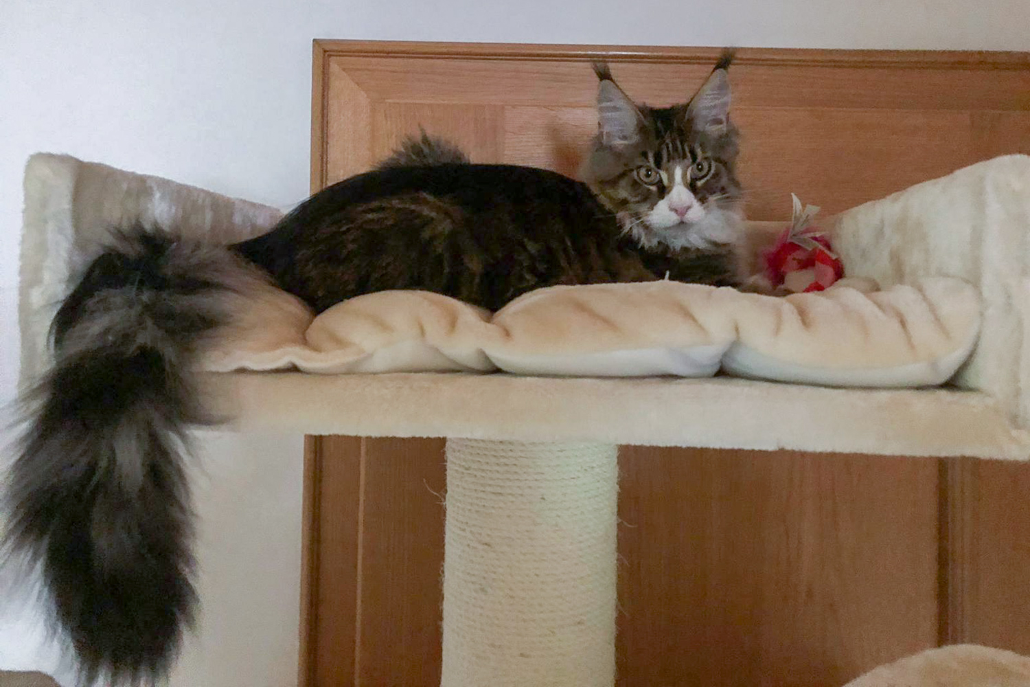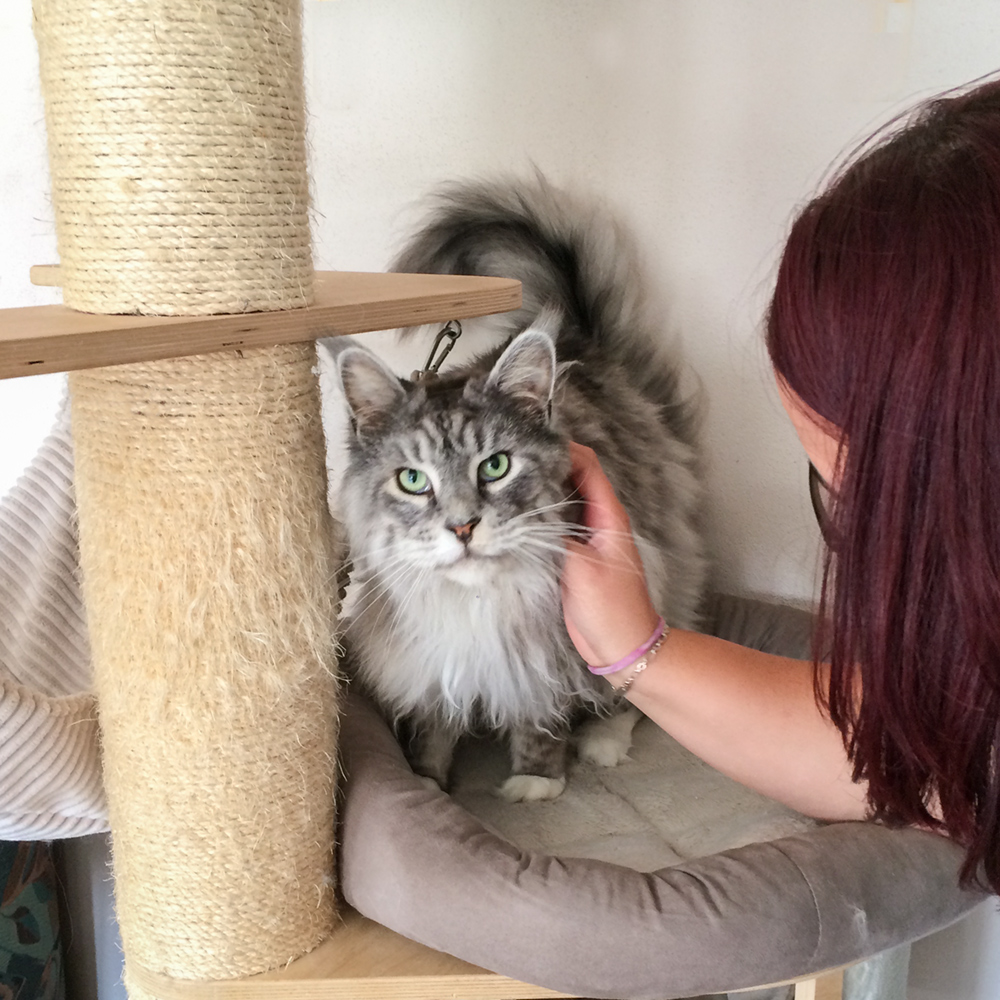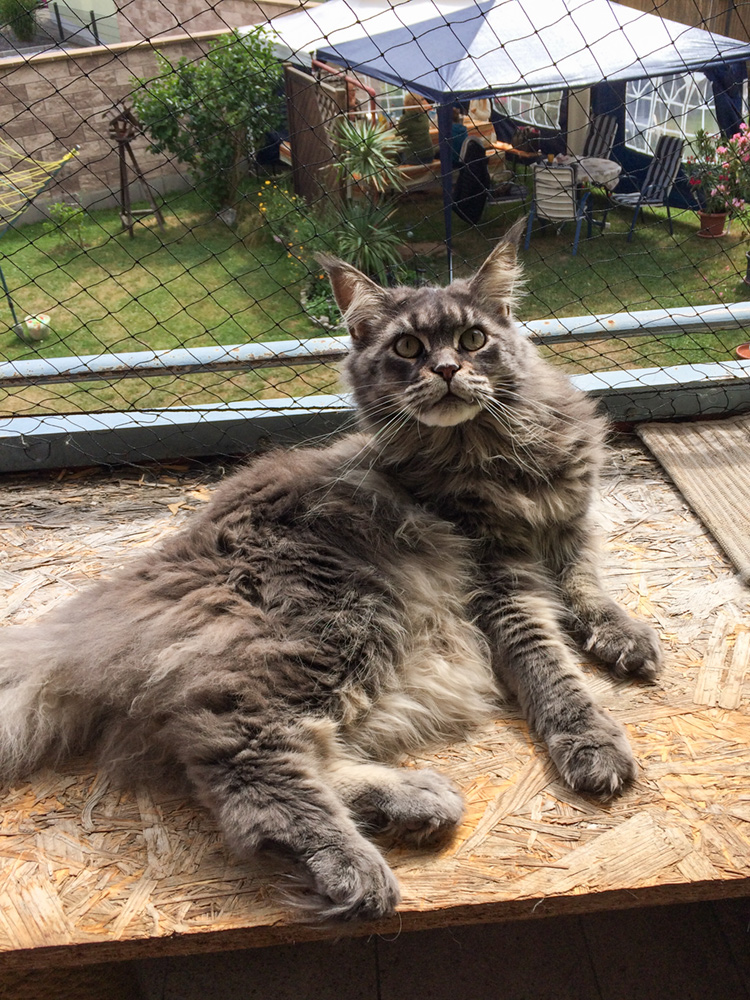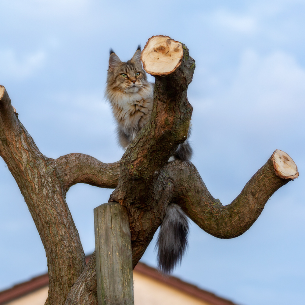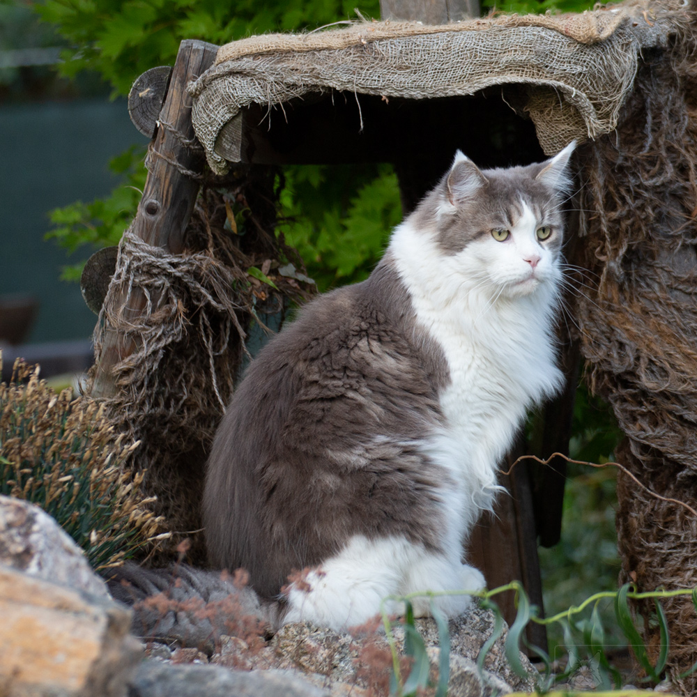 Rocky auf dem Außenkratzbaum - hier hat man tolle Übersicht.