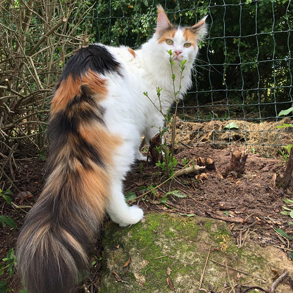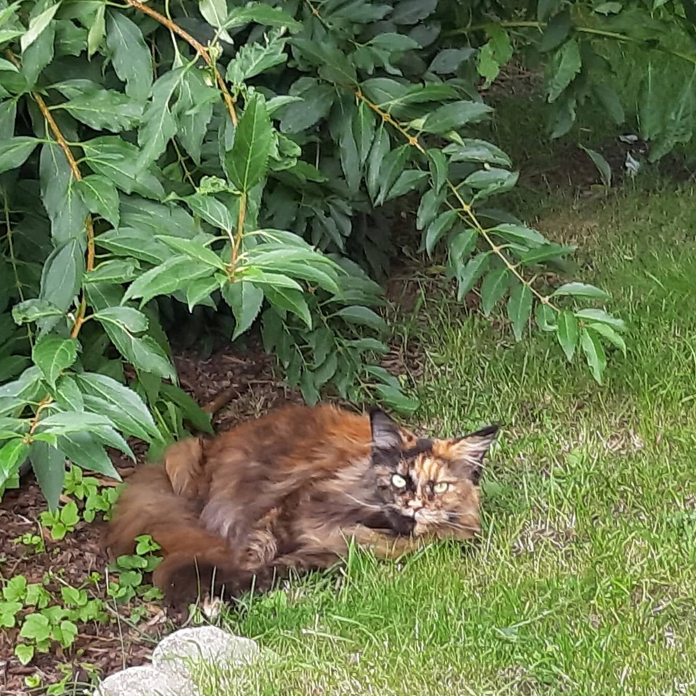 I'Xi unterwegs im Garten - sie macht einen kleinen Abendspaziergang.