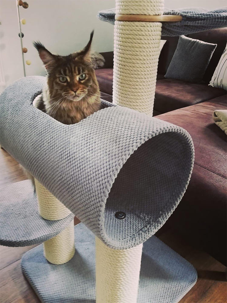 Brasilia hat den neuen Kratzbaum sofort inspiziert wie