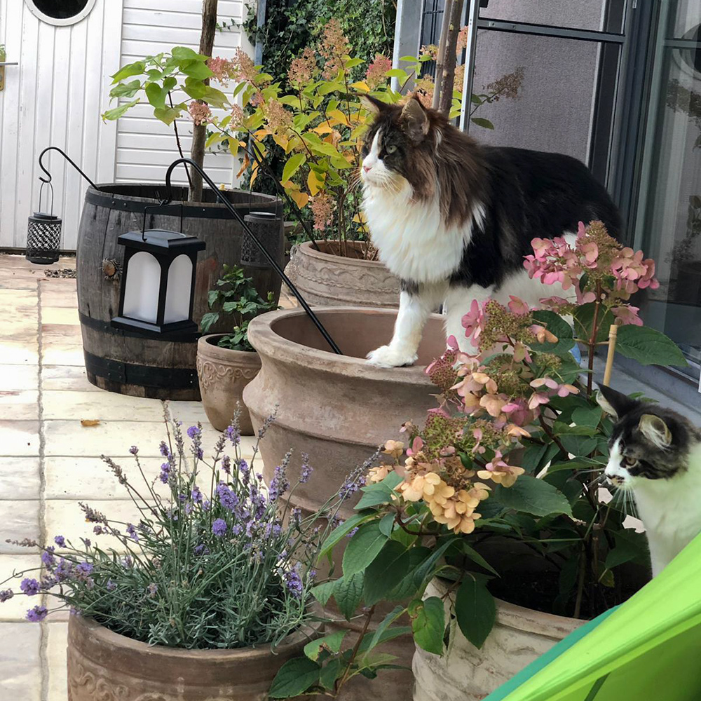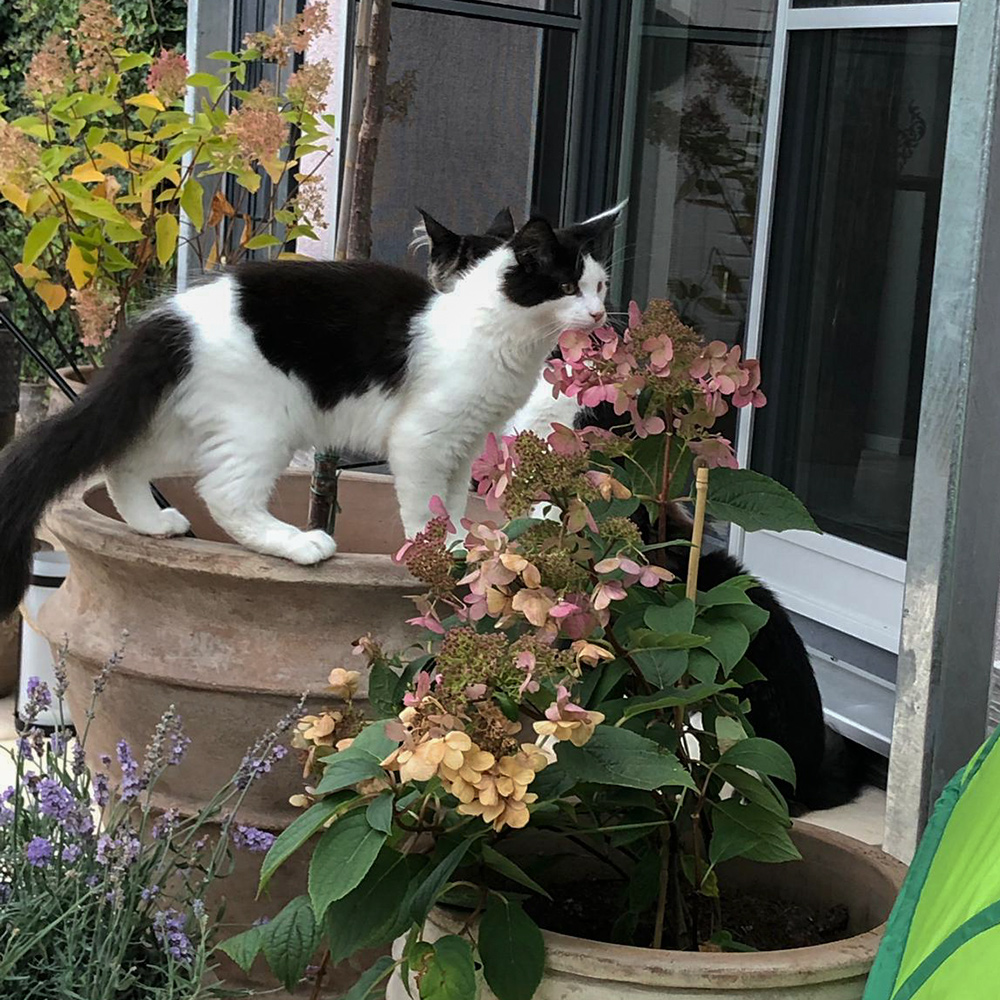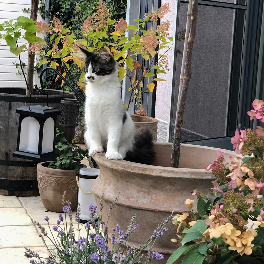 Donna macht eine Gartenpause und hält sich Indoor auf.