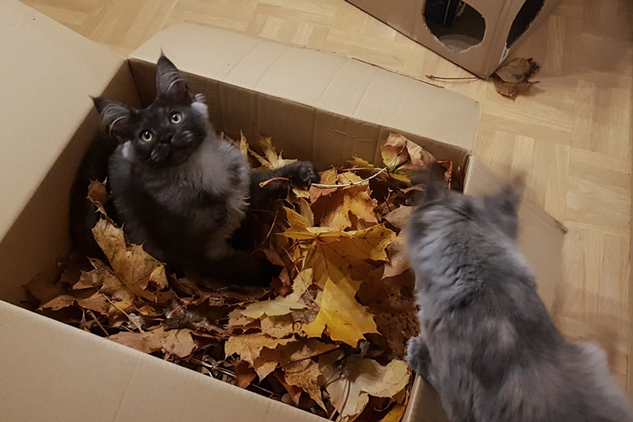 Katharina schickt ein Bild von Yason und Yosie - herbstliche Laubschachtel.