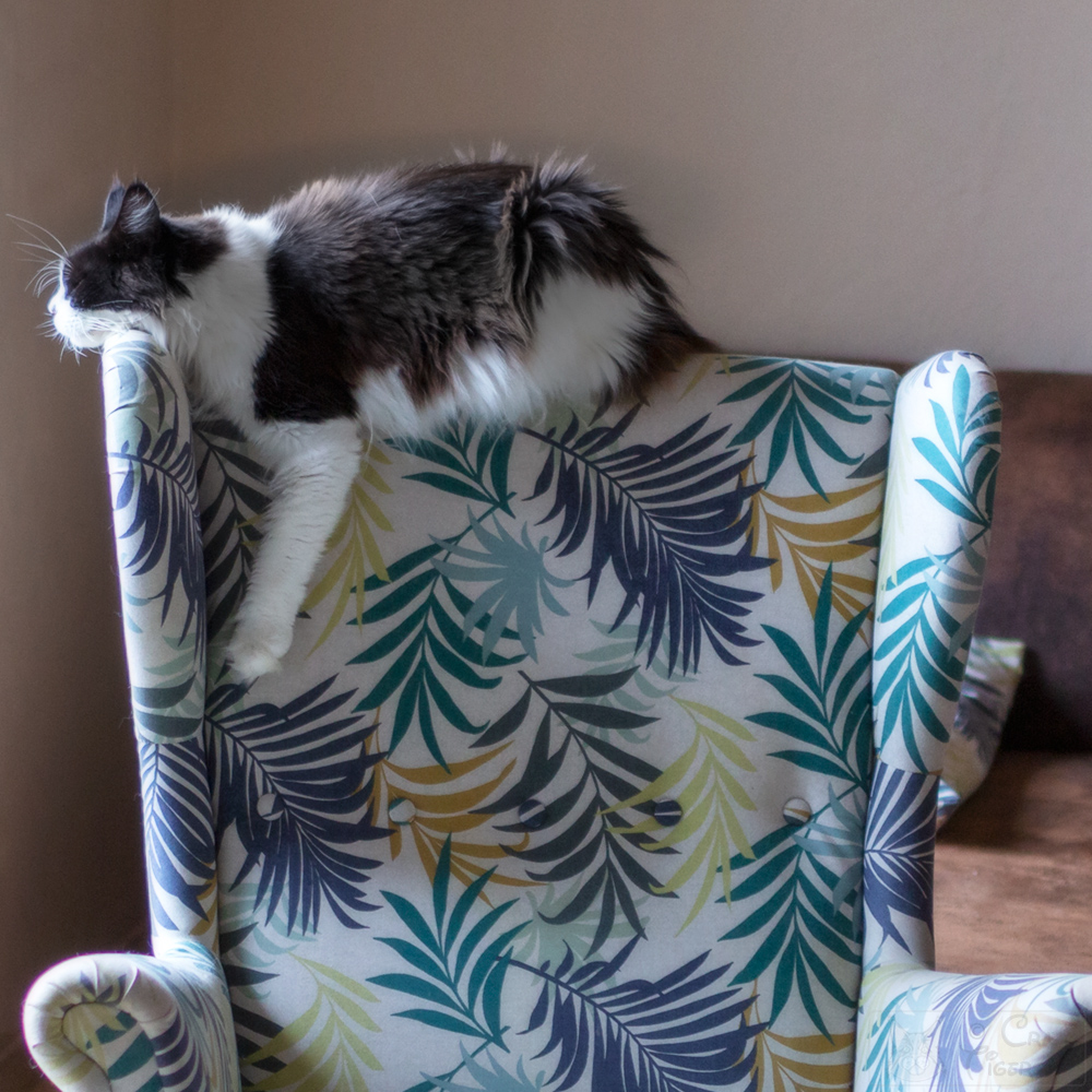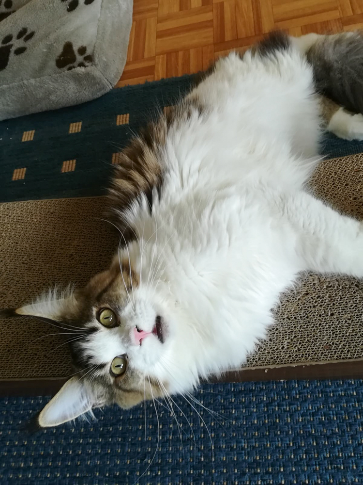 Donna "hängt ab" auf dem Wohnzimmer-Kratzbaum.