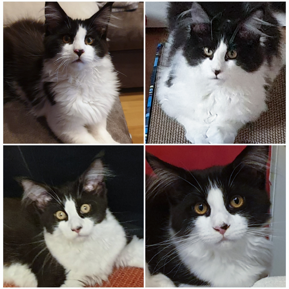 Manuela schickt ein Viererbild von Xander und Xara und Nadja schickt einen Schnappschuß von Uno.